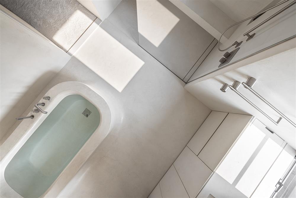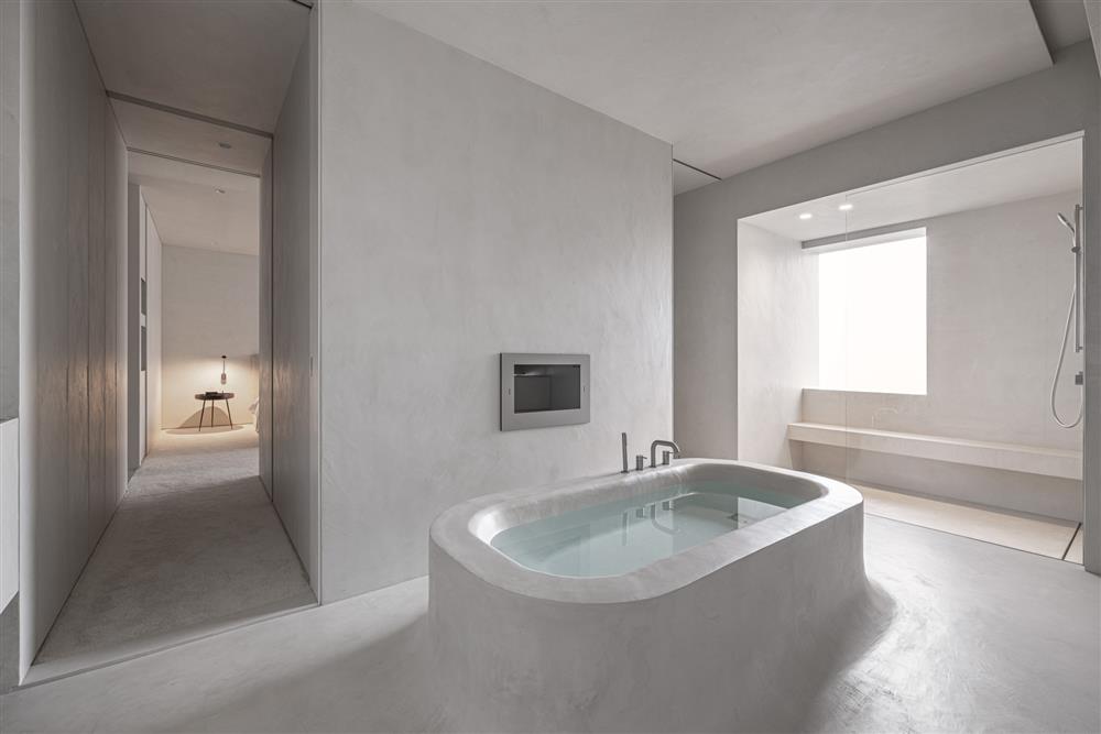唐忠漢:「不管是隱藏的走線、次序或是分割,還是牆體跟牆體之間的關連,透過光影和氛圍等看不見的設計,都能形成一種你看不到、卻感受的到的空間體會。」尤其,它白色微水泥的材質與獨特性,不單恰巧適切地引入室外光的反射,讓室內能使用最低度人工照明,勾勒一個能回歸自我、質素簡約的安適所在;也能在空氣自然流動的場域中,留下褪去水泥叢林喧囂的自我。