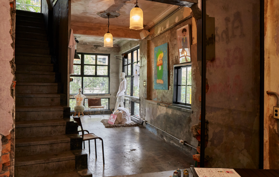 Alvan結合了影響他生活與創作的元素,在復古的老宅空間中,依據建築特質打造出一座新舊混合的期間限定店,除了涵蓋20多幅平面視覺繪畫、裝置、視覺藝術外,觀者在踏進空間,隨即可見一座由藝術家親自設計的假人台、強烈風格的潮流服飾作為入口引導,像是藝術家精心打造的小客廳迎接眾人來訪。