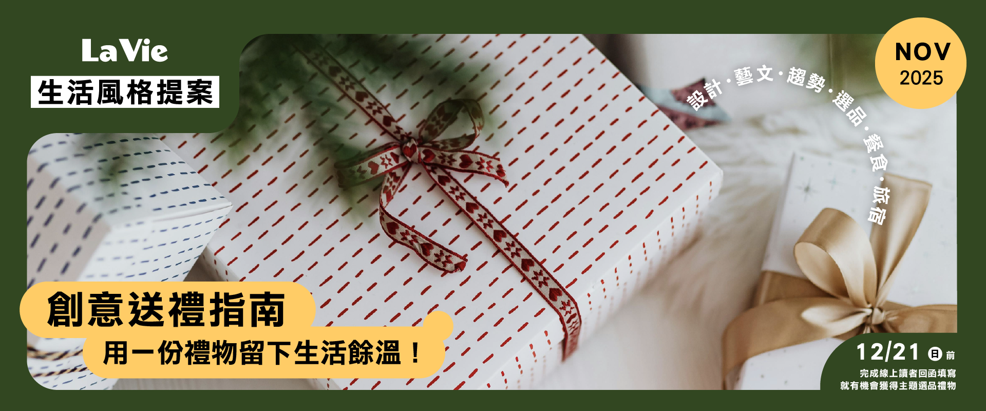 氣溫逐漸轉冷,街上開始出現歲末節慶的佈置,耶誕、新年、春節接連而來,在冬日裡最能溫暖人心的事,莫過於收到一份會心一笑的禮物。今年冬天,我們邀你慢下腳步,一起走進美感與溫度的提案現場——從設計選品、實用家電、香氛美妝、餐飲體驗到旅宿提案,每一份禮物都蘊藏著情感的傳遞;我們相信,送禮的心意,不只是「給出去」的瞬間,而是那份被想起的溫柔時刻,La Vie精選兼具質感、故事的禮物們,讓送禮成為一場風格練習、一種分享溫度的方式。