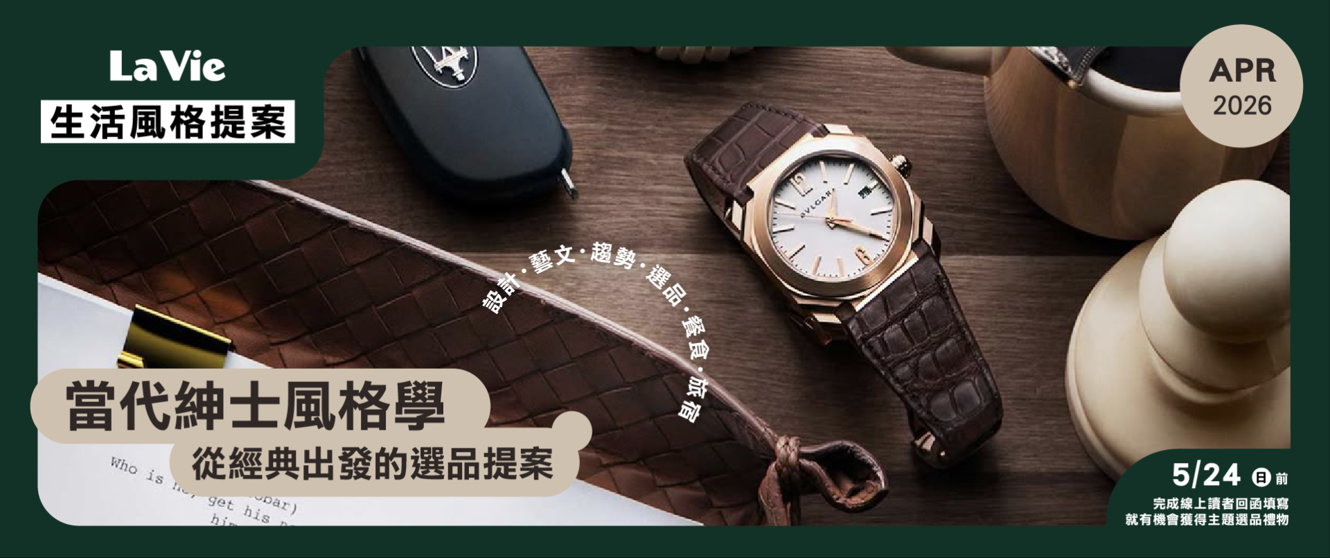 從時間開始:一只好錶,提醒我們如何與節奏相處;一件低調卻講究的皮件或書寫工具,藏著對細節的自我要求;一抹恰到好處的香氣,成為不必說出口的風格註記;而車,則是男人為自己保留的獨處空間。在男士風格逐漸回歸內在價值的此刻,這次的風格學想探討關於「紳士」生活態度——當風格不再追逐目光,而是回應內在,一種成熟而從容的選擇,自然而然地展現。