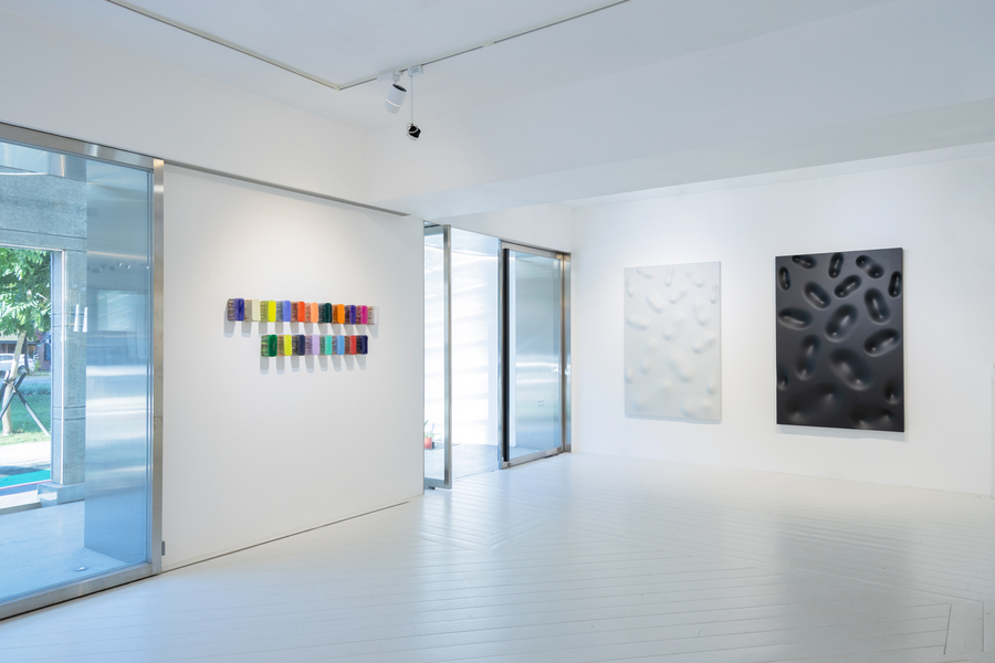 另外兩張黑、白新作,對稱凹凸,如同珍珠般的觸感挑動觸覺神經,如同陰陽調和。知名鋼材雕塑系列《站立》(Stehende)與《木質牆面裝置》(Wood Wall Object)則覆蓋著源於巴洛克的華麗色澤,鮮明的亮面烤漆如大自然靈動。