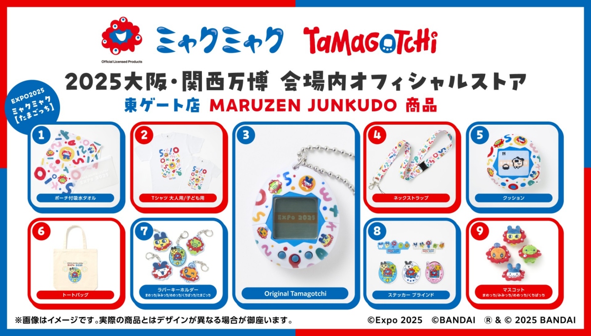 萬代1996年推出的塔麻可吉Tamagotchi,至今仍深受大眾喜愛。而此次脈脈攜手塔麻可吉Tamagotchi一同為大阪世博助陣,獻上聯名限定商品,且僅在會場限定發售。聯名周邊除包含特別版塔麻可吉,經典角色(まめっち、めめっち、くちぱっち、みみっち)也化身為「脈脈」,躍上托特包、T恤、吊飾、毛巾等商品。
