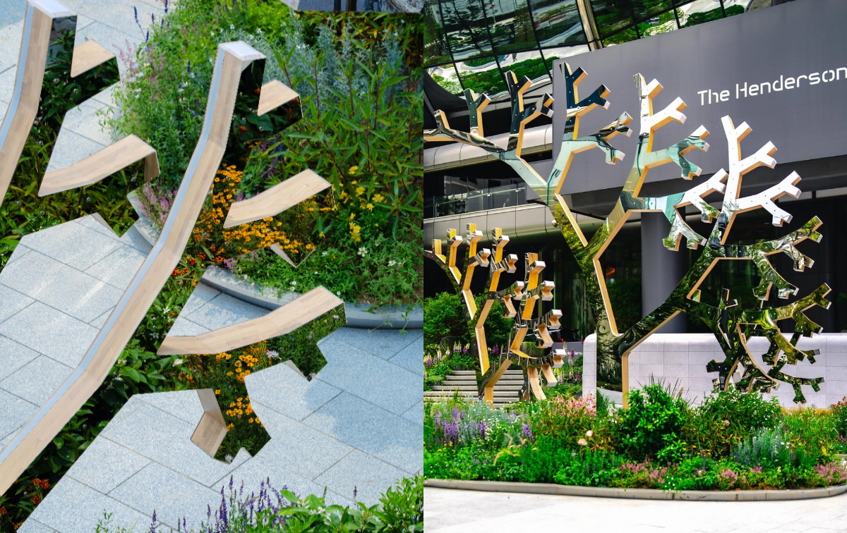 為銜接「The Henderson」周邊難得的都市綠意,ZHA將建築本身架高,空下來的地面層種植花草樹木,並攜手景觀設計團隊Gillespies規劃藝術公園,設計延續「The Henderson」花朵般的有機曲線,集結國際及香港在地藝術家以自然為靈感,搭載太陽能、在地植物等打造的公共藝術作品,搭配特別設計的療癒音樂,在繁忙的都會心臟,構築一方綠意與藝術氣息交織的天地。這座公園免費對大眾開放,邀請人們在城市中與大自然產生共鳴。