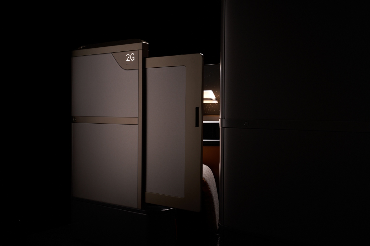 此次我們搭乘的星宇航空A350商務艙,客機設計以「舒適、隱私、安全、擁有和歸屬」為主軸,讓不論是乘坐何種艙等的旅客都有賓至如歸的感受。而商務艙選用頗具質感的深灰、暖棕和香檳色,搭配深淺色交織的木質表面以及別具美感的檯燈,營造出靜謐且高雅的氛圍;舒適的座椅設計與座位專屬的隱私拉門及單獨進出走道,讓旅客享受安靜、不受打擾的空間。