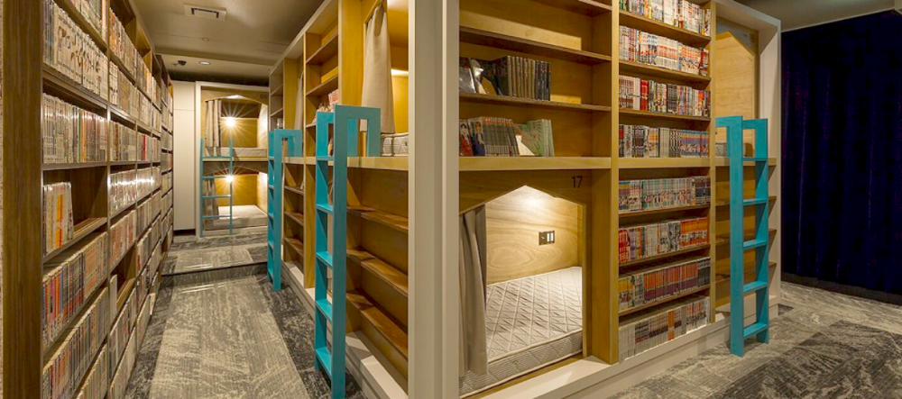 為了徹底擺脫只是提供旅客短暫過夜地方的既定印象,近來有不少膠囊旅館業者紛紛祭出別出心裁的旅館主題設計,從女性專屬、書店、居酒物到鐵道等五花八門種類應有盡有,有別於華麗昂貴的五星級飯店,這些價格較親民並且獨具特色的膠囊旅館,反而成了遊客們爭相入住必訪的景點。在古色古香的京都,則有間複合式咖啡店業者看準這波商機,選在今年推出漫畫與住宿結合的膠囊旅館「コミカプ」(Comics and Capsule Hotel),在這裡你可以隨時閱覽旅館內三萬冊漫畫和小說讀物,實現嚮往已久沉浸在漫畫世界裡的美夢。