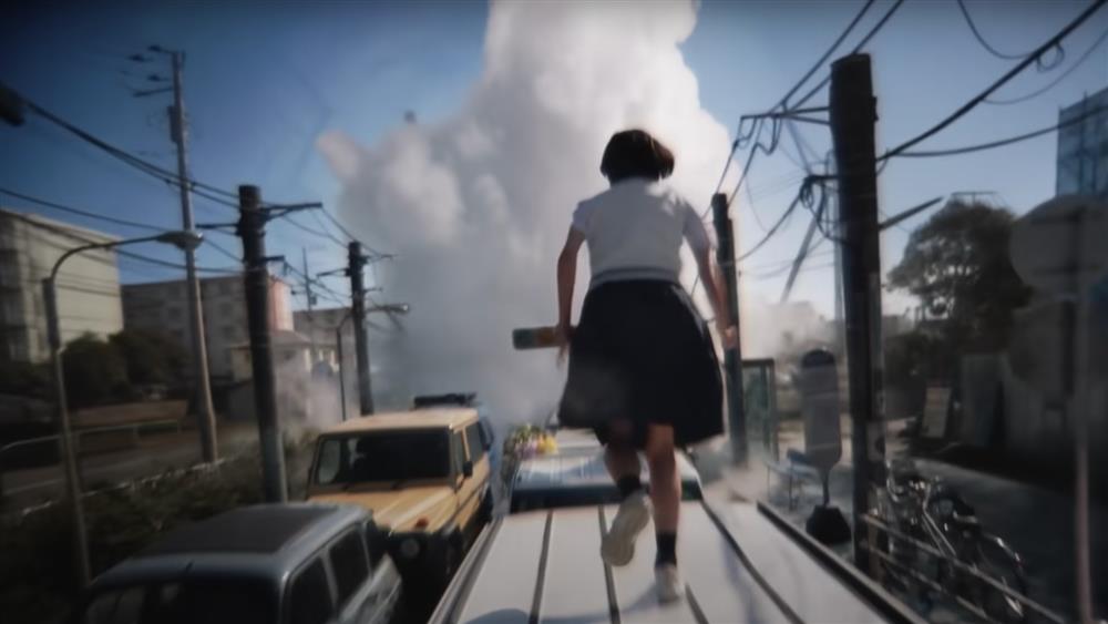 於是,這部以「雲」來呈現的廣告,讓在通往學校路上的中島セナ,看到眼前一片積雨雲與包裹住街道的透明薄膜後,好似要打破一切束縛般,開始用盡全力地奔跑、跳過一輛輛車子,最後她躍上雲端時,透明膜也隨之破裂,巧妙將揮灑青春汗水的熱血之情,與「不需要翅膀,汗水也會把我帶過去」的影片概念相結合。而為了逼真再現雲朵,團隊經過反覆測試,才製作出近乎真實的積雨雲。