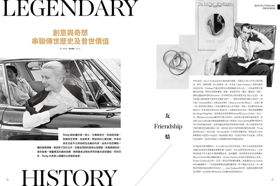 當卡地亞於百年前將「Trinity」這個系列以此命名時,即蘊含了一為三、三為一的不可分離性——「三位一體」,「三」如「一」之和諧與並進,寓意Trinity是在位於人類理性之上,跳脫窠臼的精神思考。1924年,卡地亞家族第三代傳人路易.卡地亞(Louis Cartier)以創意巧思設計了Trinity戒指,由黃K金、白K金與玫瑰金三環繾綣交纏,戒指優雅地迴旋著細膩感性,如同「莫比烏斯」環(Möbius),從起點開始延續而沒有終點,在時光芢苒中化為品牌永恆經典,始終歌頌著愛情、友情和忠誠的堅定。這次藉由Trinity誕生100週年,我們翻閱珍貴的歷史檔案,徜徉於傳奇歷程中,見證當代設計如何不懈蛻變與進化。