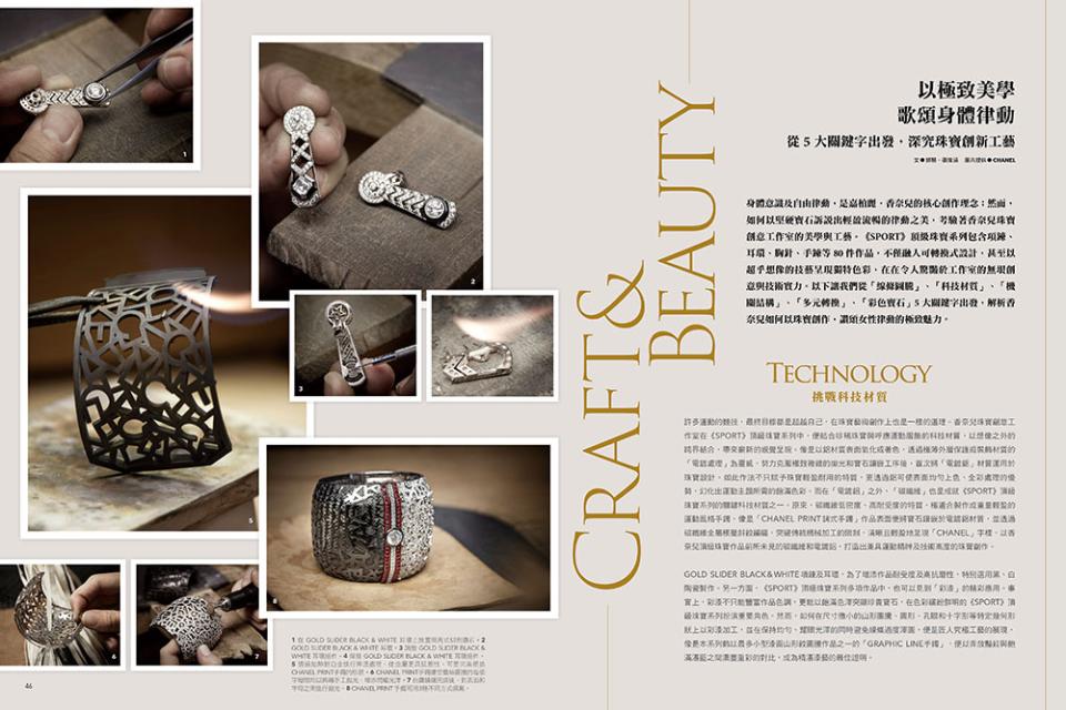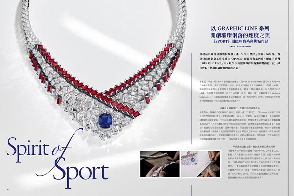 「代表之作」由GRAPHIC LINE篇章的珠寶作品切入,邀請讀者開啟這趟探索《SPORT》頂級珠寶系列的迷人旅程;「創作靈感」從香奈兒女士自1921年成立製作運動元素的服飾工作坊開始,帶出《SPORT》頂級珠寶系列之創作核心——以身體意識及自由律動為主題的概念;「美學與工藝」則透過La Vie編輯視角,解析整個系列的設計亮點,包括:科技材質、圖騰與線條、可轉換式設計、登山扣、運動繩等機關,突顯卓越工藝所打造的機能性;「歷史啟迪」節錄香奈兒女士過往的訪談摘錄,由導演阮鳳儀一起聆賞解析,呈現跨時空、跨軌跡的精彩對話,碰撞靈感火花;延續探索自由的設計思維,「影像視角」不僅藉由阮鳳儀訴說她眼中的律動之美,亦暢聊她如何從女性創作者的身分觀看《SPORT》頂級珠寶系列,並獲得哪些全新啟發。