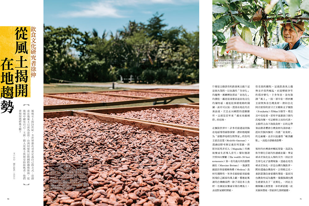 從20世紀所興起的法國新料理運動、慢食運動,到21世紀的西班牙分子廚藝、新北歐料理等風潮遞嬗,今日許多人更常聽到的是「風土」、「在地化」、「台灣味」這些詞語,這股探究在地料理脈絡與風味特質的趨勢從何而來?是所謂本地意識抬頭,或是世界各地所興起的「在地顯學」趨勢?而當《米其林指南》(Michelin Guide)登陸台灣,「亞洲50最佳餐廳」(Asia's 50 Best Restaurants)聲量越益壯大,這些國際評鑑將如何影響我們的飲食文化?此外,新生代主廚勇於表達料理觀點,擁有國際視野與在地關注的他們,如何汲取土地與生活裡的靈感,向國人與世界展現屬於台灣的料理?