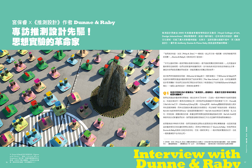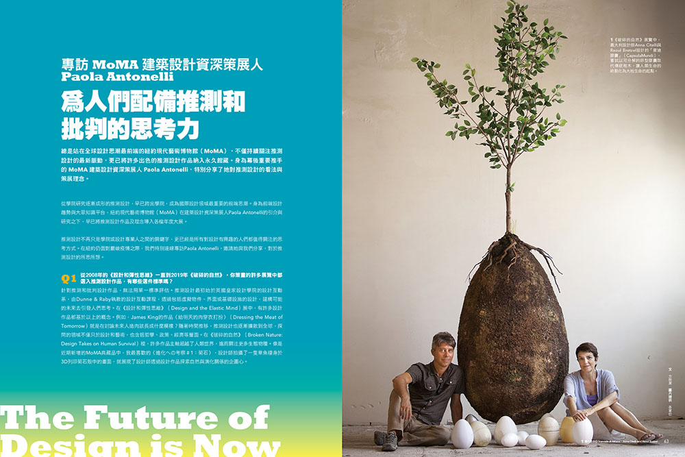 我們希望能將這股最新的設計思潮,分享給每位對設計、或者說對世界充滿好奇的你。我們專訪了最早提出「推測設計」概念的設計研究者Dunne & Raby,以及紐約現代藝術博物館策展人,還有國際間活躍的推測設計師,第一手呈現他們的觀點。